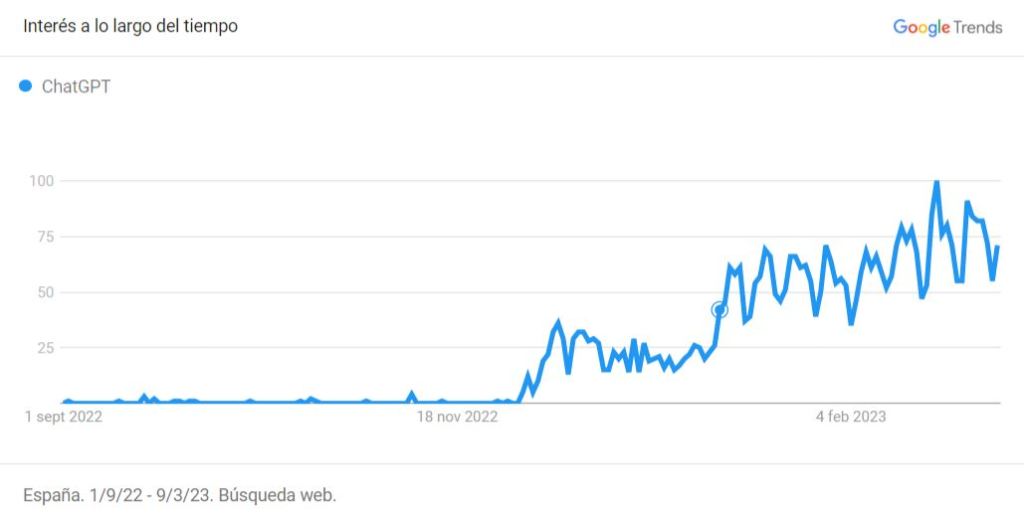 Sin duda, este 2023 terminará con ChatGPT entre las palabras más buscadas, ya que desde que se lanzase en noviembre del 2022, las búsquedas para entrar y utilizarlo no paran de incrementarse.